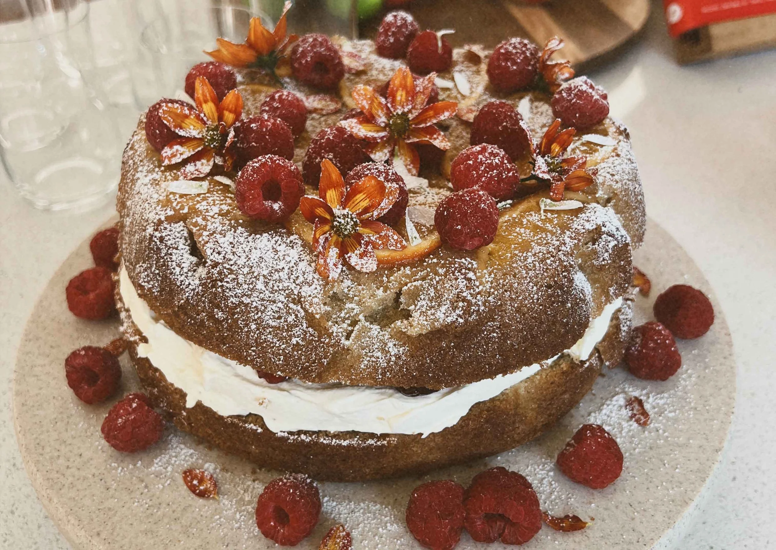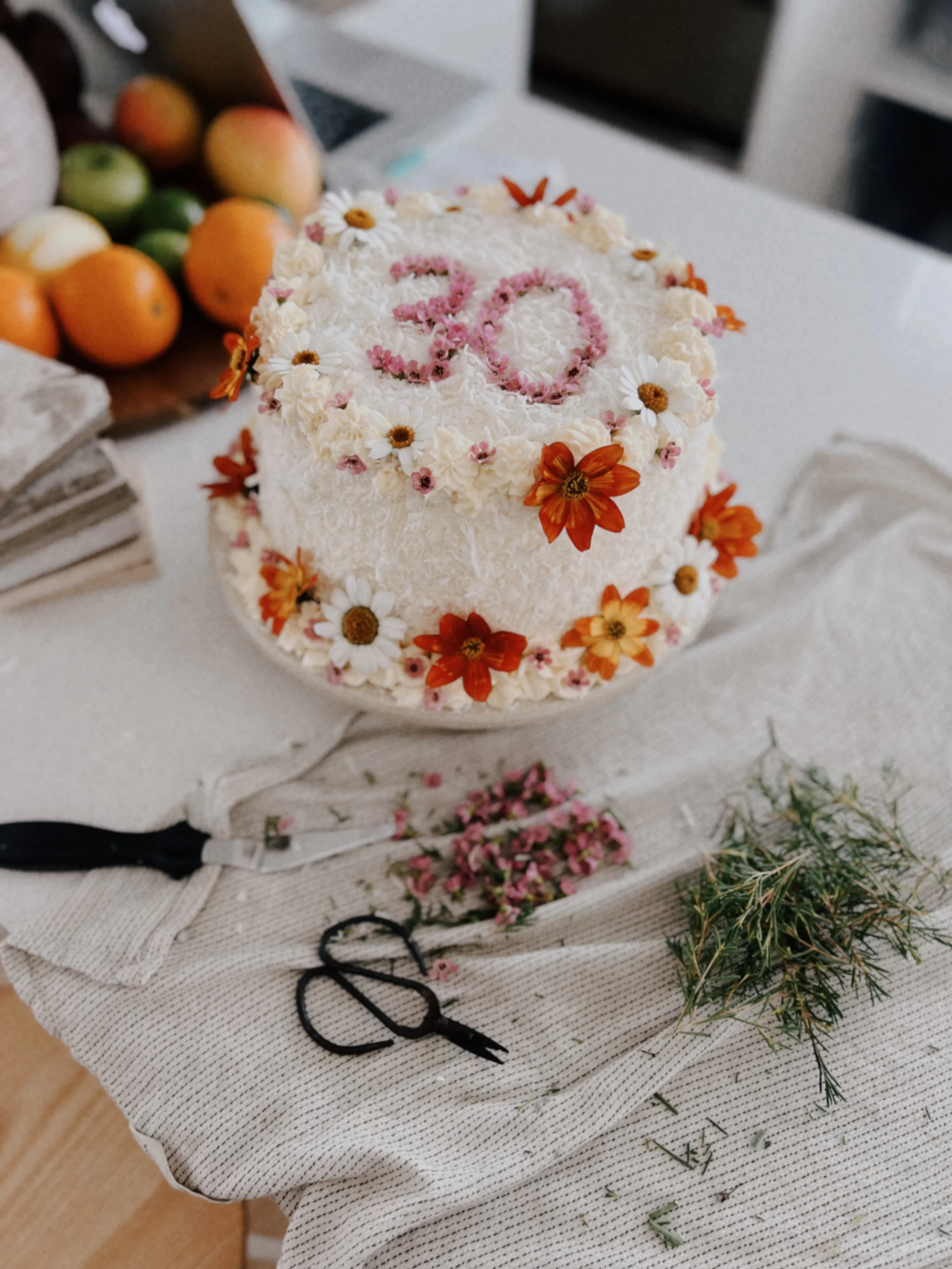 An activity I enjoy doing with my partner is baking delicious food and making yummy drinks with an emphasis on presentation and creating “pretty food”. As a creative person I find it fun to decorate and make desserts look appealing. For my 30th birthday i made a big coconut white chocolate layered cake and decorated it with marigolds, daisies and writing ‘30’ in chamelaucium flowers. For my partners birthday this year I spent a whole day making a saffron, brown butter candied pear cake, which again was decorated in flowers and fruits from our backyard.