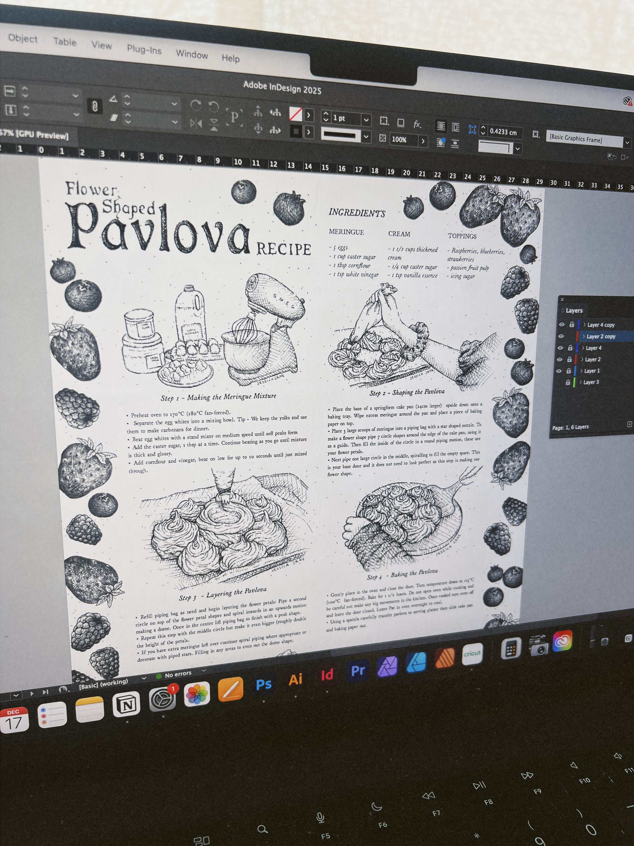 And so the idea of illustrated recipes was born! I grew up looking at recipe picture books and looking through old cookbooks. The idea of drawing food gives me a different theme to focus on and appreciate, and creating recipes makes use of my design skills. My detailed, nostalgic ink drawing works well with this theme too as it caters to a vintage illustrated recipe look.